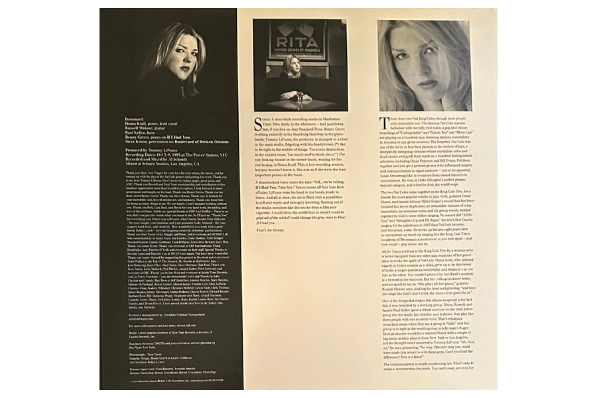 All for You: A Dedication to the Nat King Cole Trio — це третій студійний альбом канадської співачки Діани Кролл, який був випущений 12 березня 1996 року лейблами Impulse! Records та GRP Records. Альбом є даниною пошани знаменитому джазовому тріо Нат Кінг Коула, в якому співачка інтерпретує його класичні композиції, поєднуючи неповторний стиль та емоційну глибину. Цей альбом став важливою віхою у кар'єрі Кролл, відзначаючись її м'яким вокалом і чудовою інтерпретацією джазових стандартів.