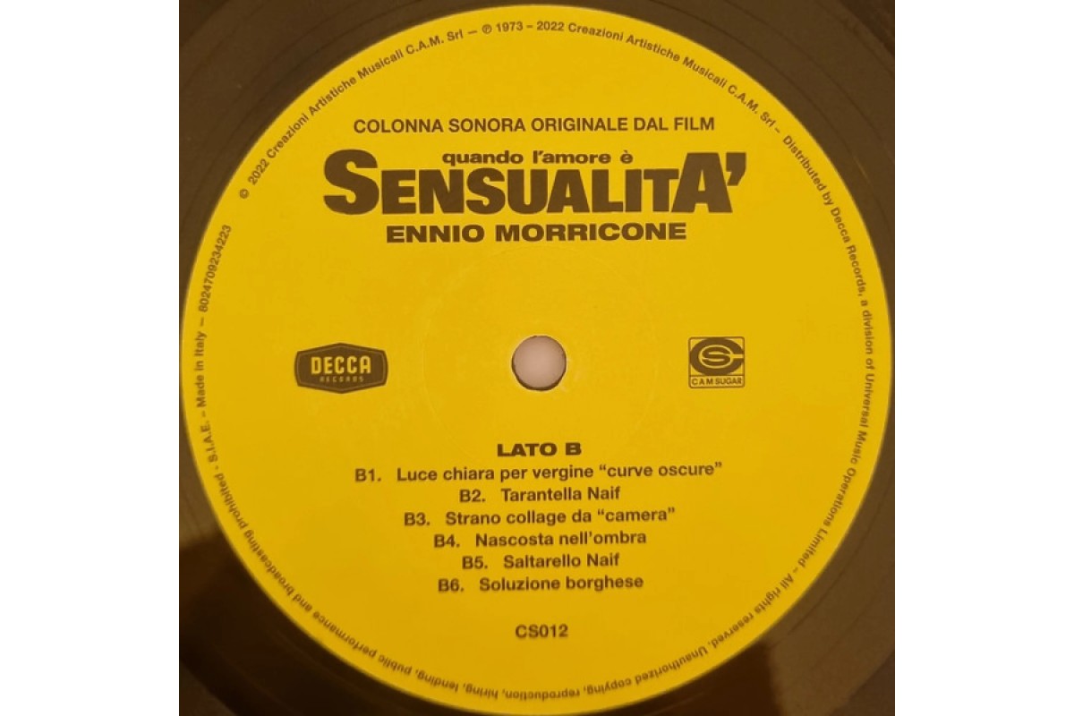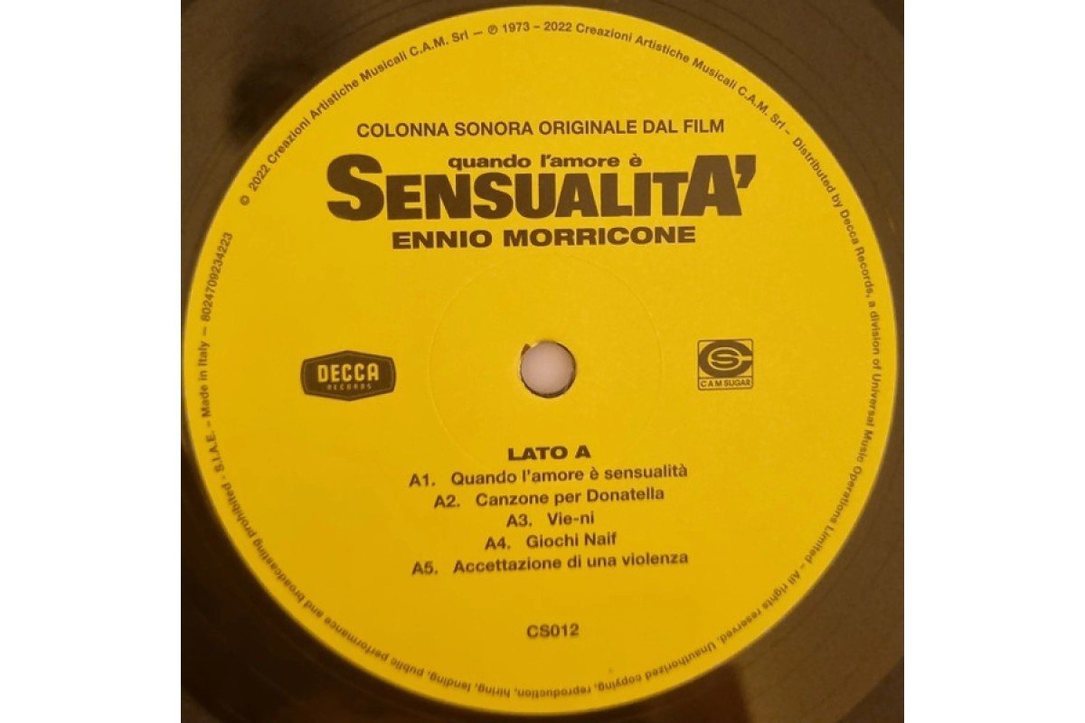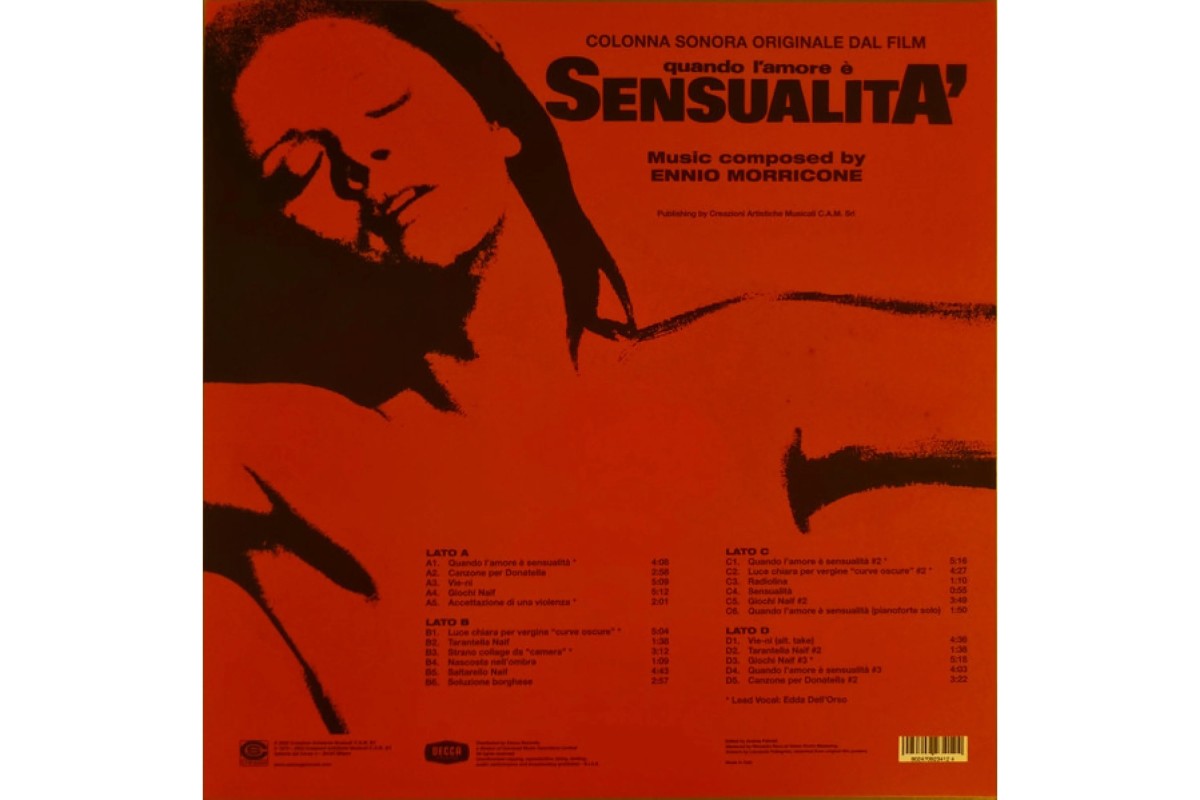Оригінальний саундтрек до фільму "Quando l’Amore è Sensualità" – один із найзагадковіших, психоделічних і темних творів Енніо Морріконе. Видання на двох платівках уперше містить повну версію саундтреку, зокрема два боки раніше неопублікованого матеріалу. Музика, створена для фільму Вітторіо Де Сісті, відображає лицемірство буржуазного суспільства через контраст між первісною жорстокістю (чоловіча агресія) та прозорою, ефірною ніжністю (жіноча невинність). Саундтрек включає експериментальні тембри, загадкові синтезатори, племінні барабани й обсесивні колискові, демонструючи геніальність Морріконе. У записі також присутній улюблений трек "Vie-Ni" з колекції "Morricone Segreto" та композиції з вокалом Едди Дель’Орсо і психоделічними прог-номерами, що відкривають "секретний" бік Маестро.