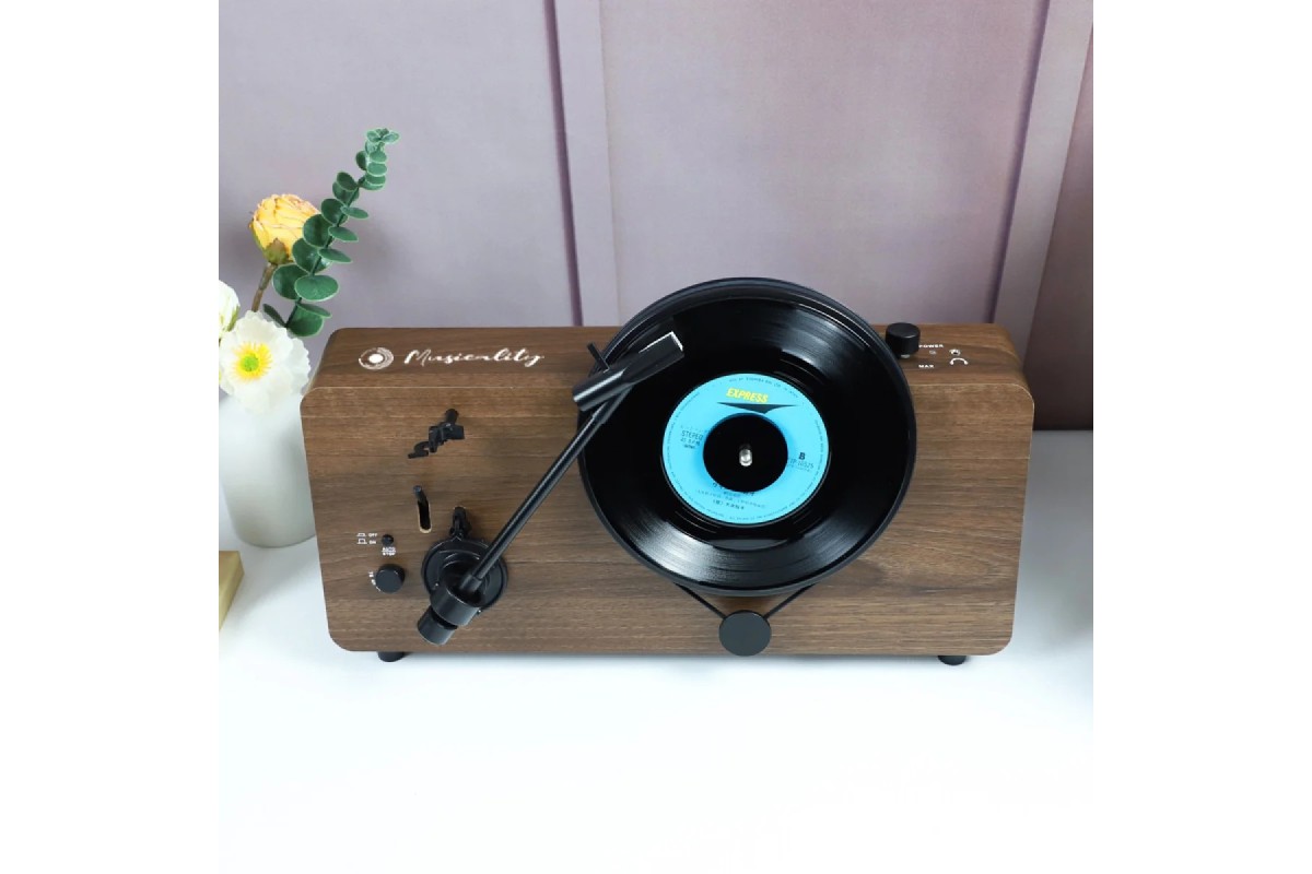 Програвач виготовлений із МДФ та ABS-пластику, а текстура поверхні візуально нагадує натуральну деревину, що надає йому багатого вигляду. Він підтримує три швидкості обертання (33 1/3, 45 та 78 об/хв), що дозволяє відтворювати вінілові платівки різних форматів, від старих (78 об/хв) до сучасних 33 1/3 LP. Функція Bluetooth дозволяє легко підключати інші пристрої для відтворення музики без дротів. Також можна підключити зовнішній пристрій дротовим методом через роз'єм AUX. Функція автостопу зупиняє обертання пластинки після її відтворення, запобігаючи зайвому зносу голки та вінілової пластинки, а роз'єм для навушників забезпечує можливість приватного прослуховування.