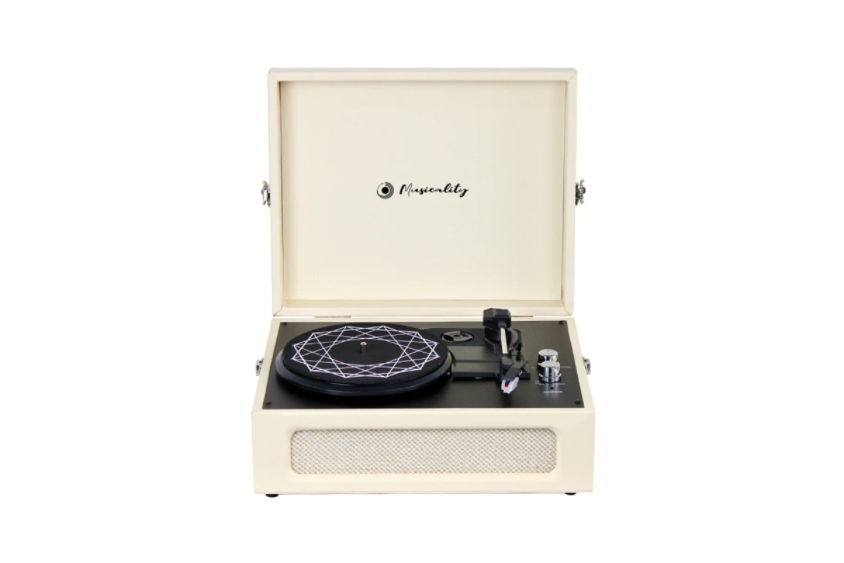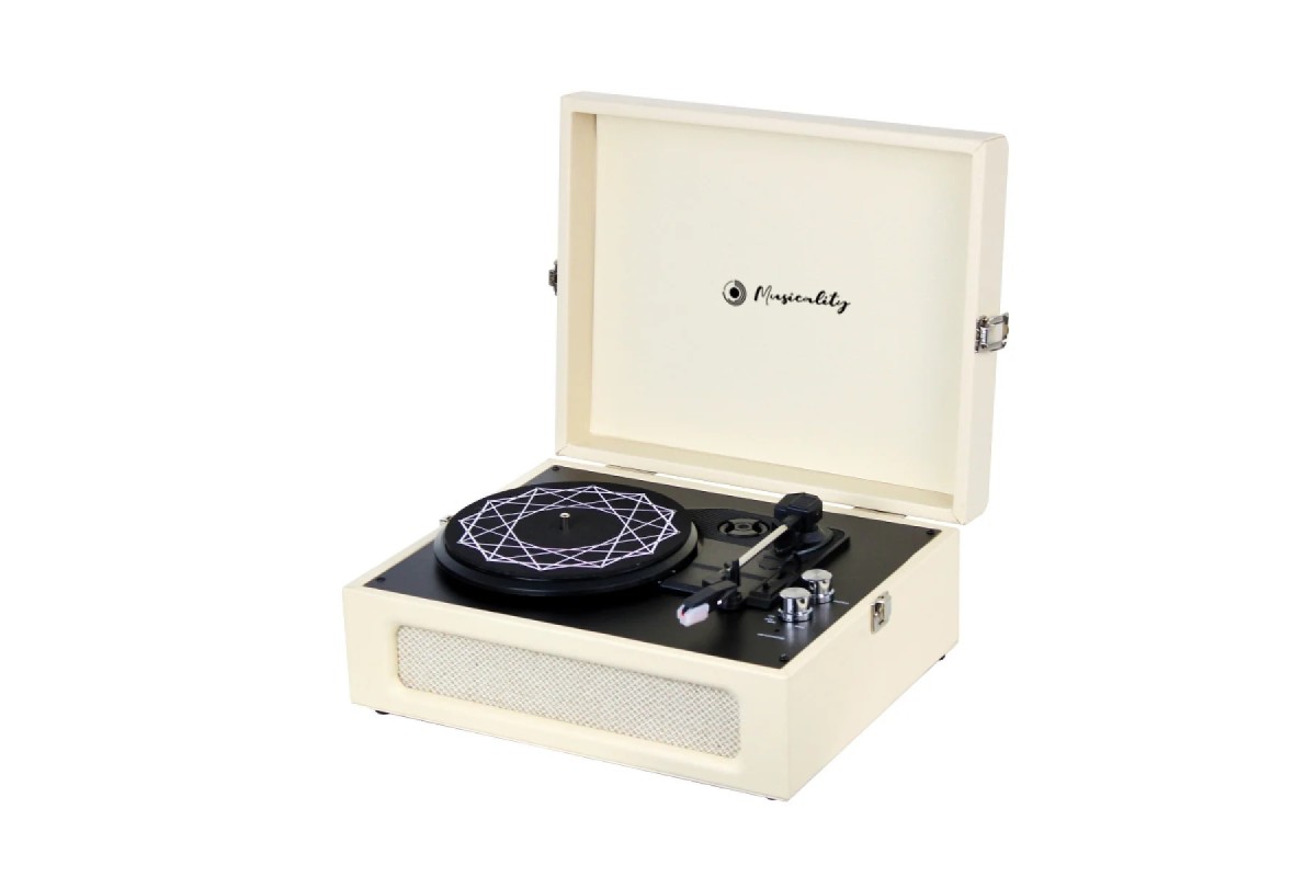 Musicality MLD _Melodic – витончений та компактний програвач вінілових платівок, який ідеально підійде для прикраси будь-якого інтер'єру. Його мінімалістичний дизайн забезпечує вишукану, ненав'язливу присутність на полиці або невеликому столику. Корпус обтягнутий високоякісною штучною шкірою, а каркас виготовлений із МДФ та ПВХ. Програвач оснащений двома металевими клямками, які надійно закривають кришку. На панелі керування знаходяться два регулятори – для перемикання функцій та регулювання швидкості. Зліва від них розташовані два перемикачі – швидкості та автостопи.