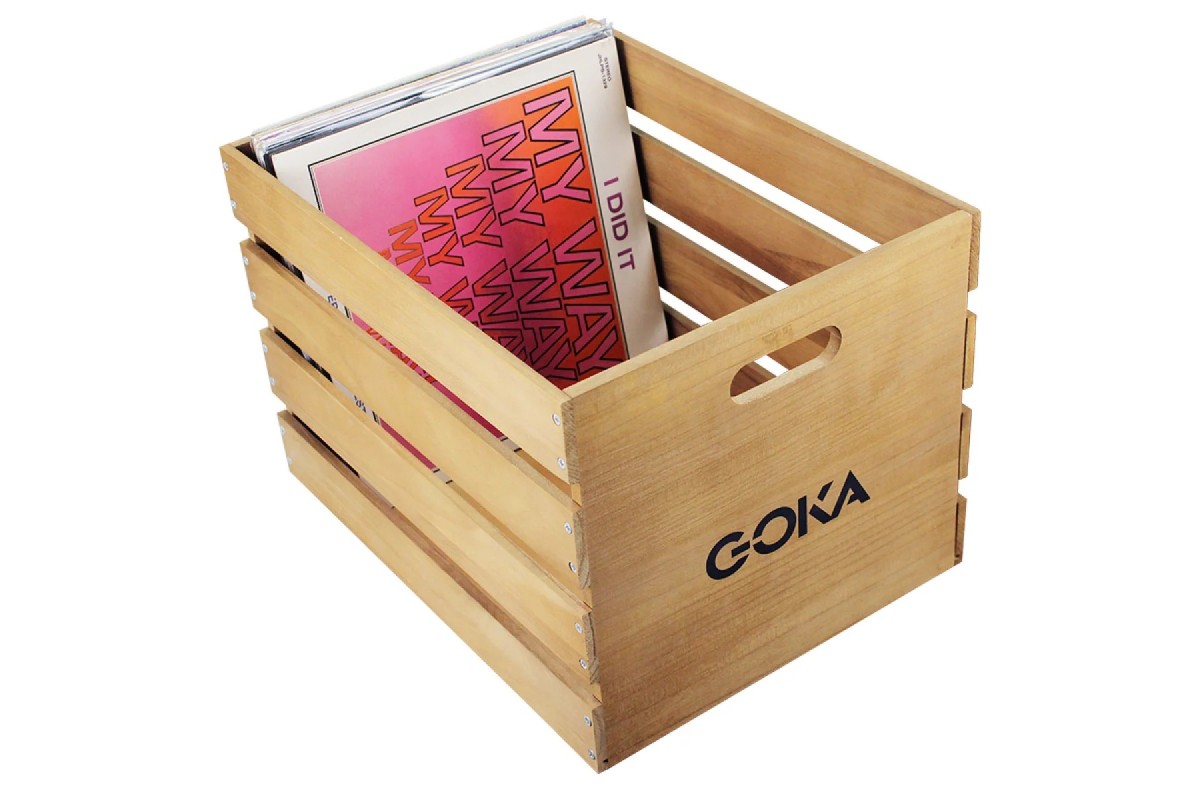 Ящик для зберігання платівок GOKA GK-R41 виконаний із якісної фанери. Цей ящик дозволяє зберігати до 130-140 платівок. Товщина стінок 9 мм, а габарити складають 46 x 35 x 31 см. Натуральний колір деревини надає виробу стильного вигляду, що чудово поєднується з різними стилями оформлення інтер'єру.