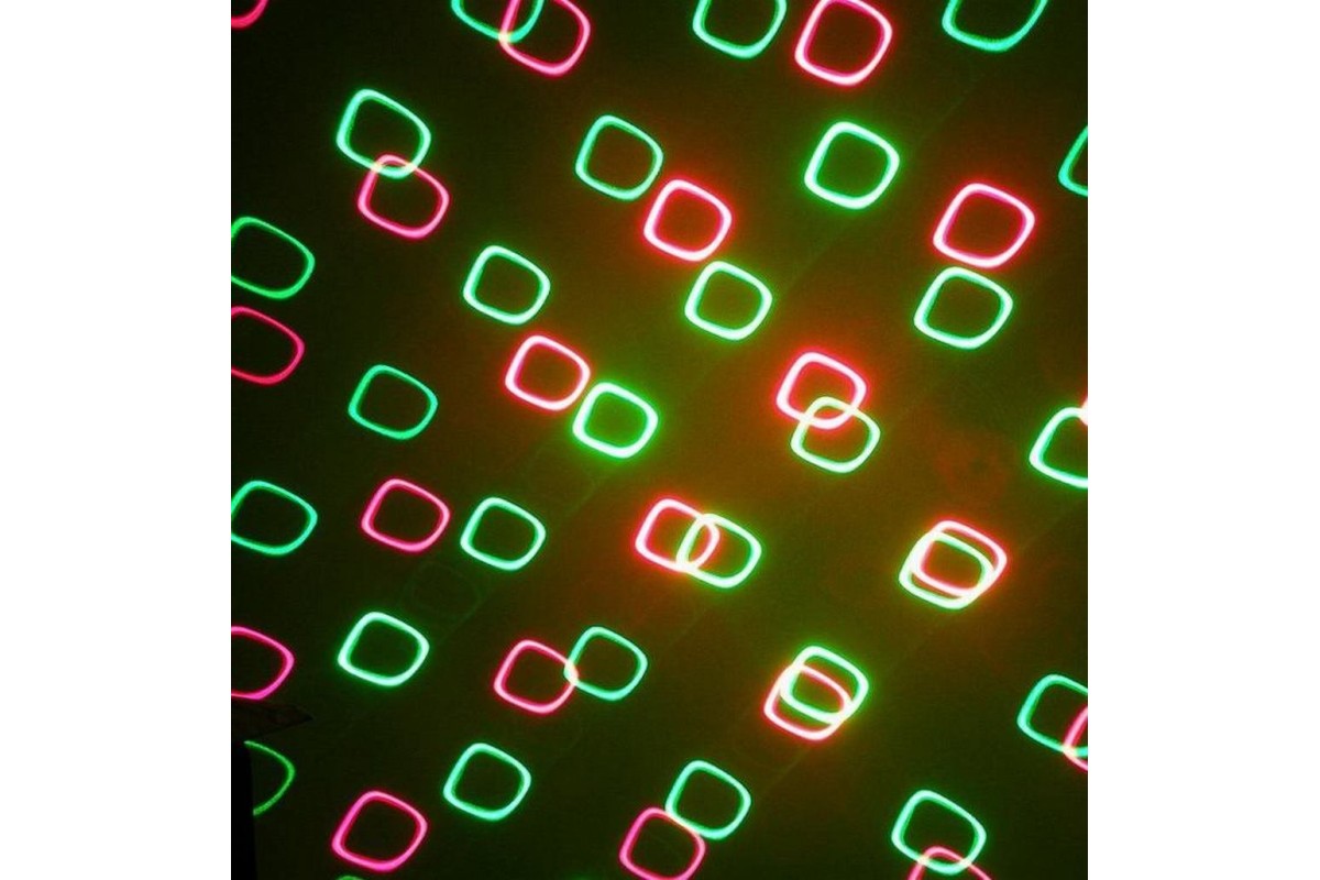 Червоний і зелений мерехтливий лазер з більш ніж 50 видів ефектів.