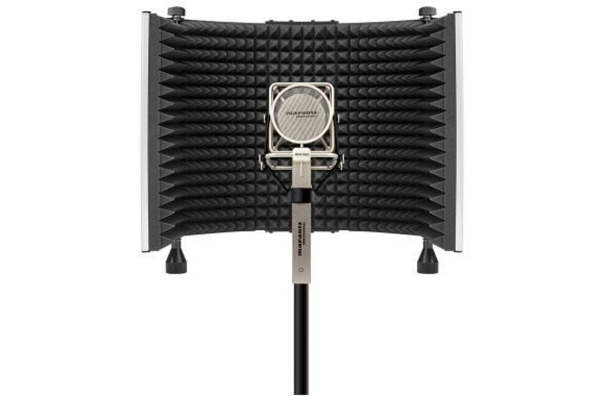 Marantz PRO Sound Shield - звукопоглащающіе екран, призначений для захисту вашого мікрофона від небажаних ранніх віддзеркалень і стоячих хвиль, що дає вам більш чистий і більш справжній вокальний звук під час запису в акустично необробленому приміщенні. Пристрій складається з 5 високоякісних перфорованих металевих панелей (3 стаціонарних, 2 складних) і професійної акустичної піни EVA, а також 3 знімних алюмінієвих ніжок. Можна використовувати безпосередньо на столі для запису або прикріпити до стійки мікрофона. Широкий діапазон регулювання підходить для будь-якого мікрофона розміру.