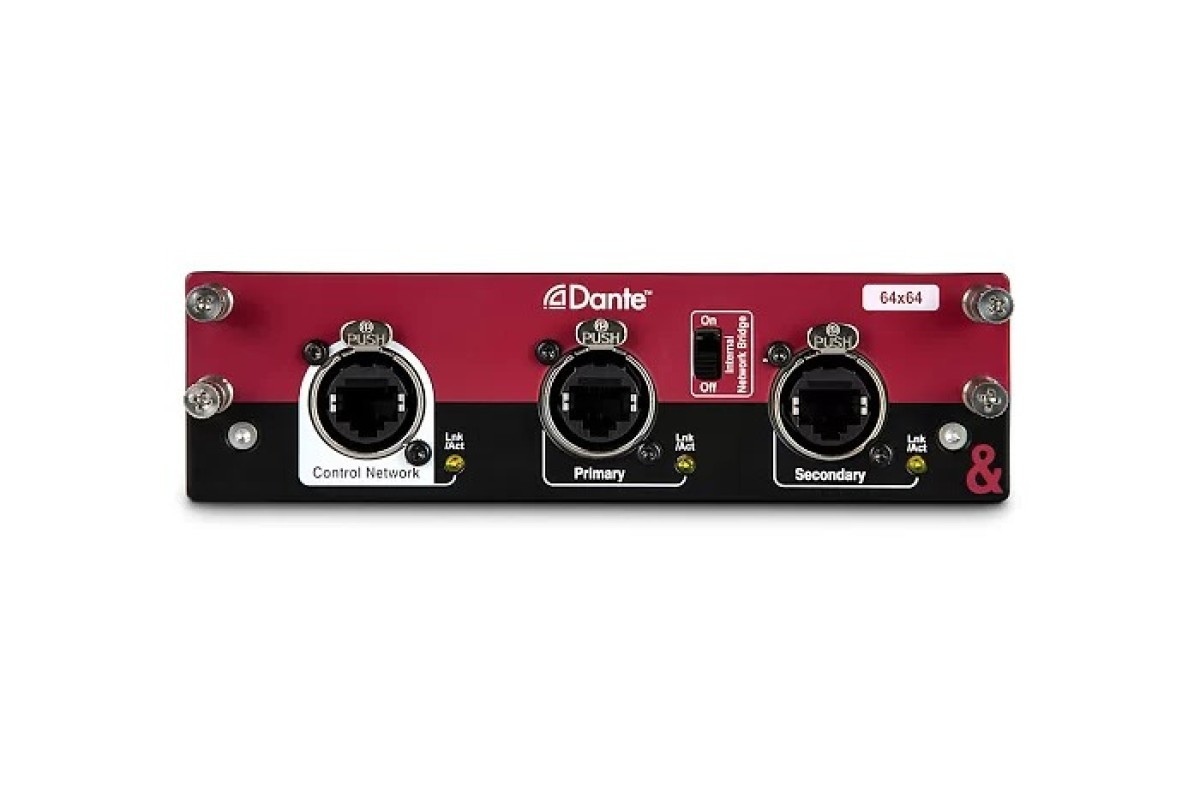 64 двонапрямлених каналу введення / виводу Dante з частотою 96 кГц або 48 кГц